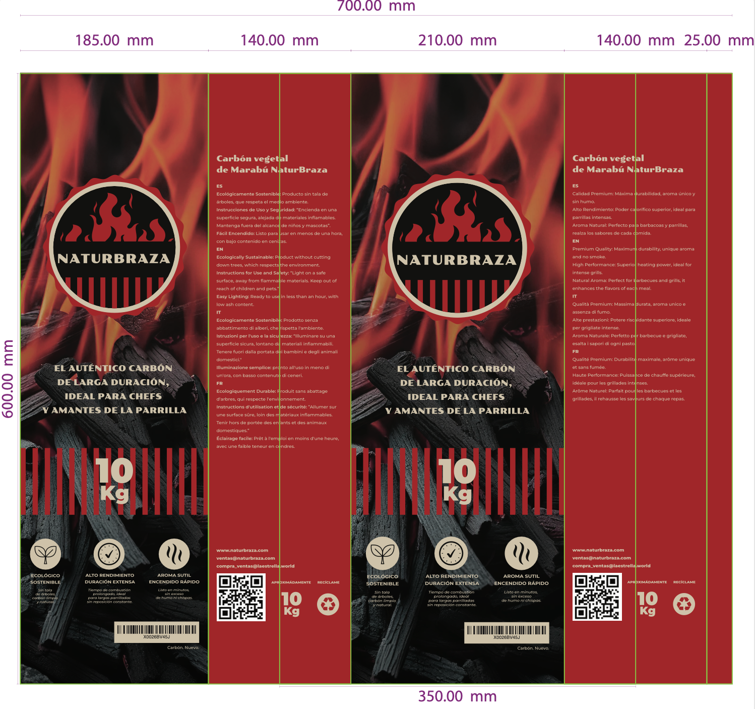 Corporate brand creation for a charcoal company, including logo design, brand guidelines, corporate color palette, and typography. Packaging design development aligned with the brand identity.